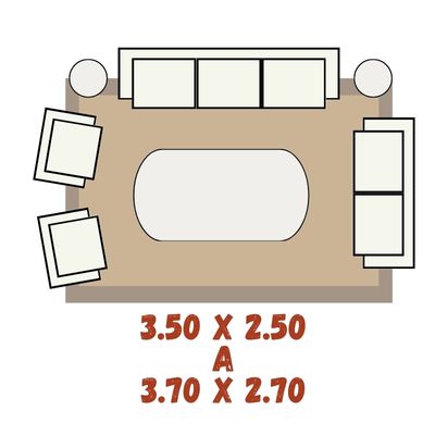 Usa la siguiente guía de tamaño de tapetes y sigue la siguiente recomendacion.
